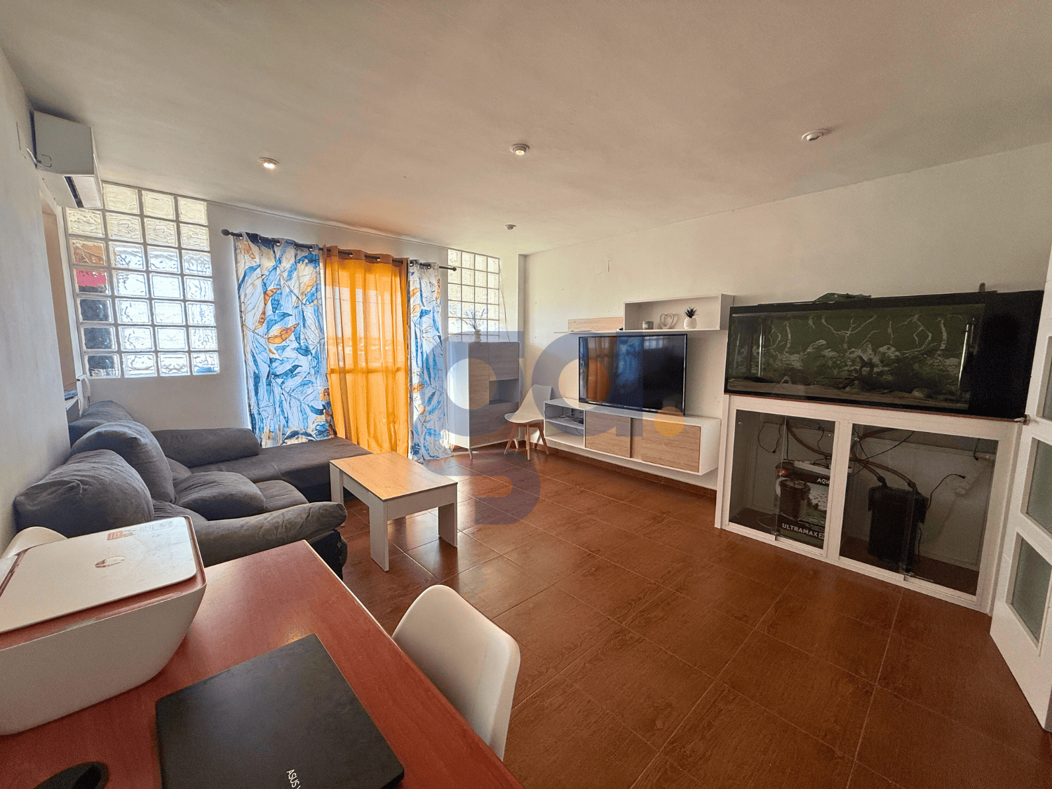 Además, todas las estancias son exteriores salvo el baño, lo que contribuye a una vivienda especialmente luminosa y bien ventilada. Para mayor confort, cuenta con aire acondicionado en el salón y en el dormitorio principal.
